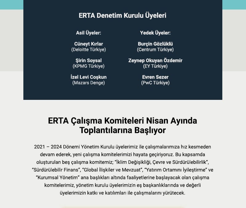 Entegre Raporlama Derneği Türkiye (ERTA) web sitesi