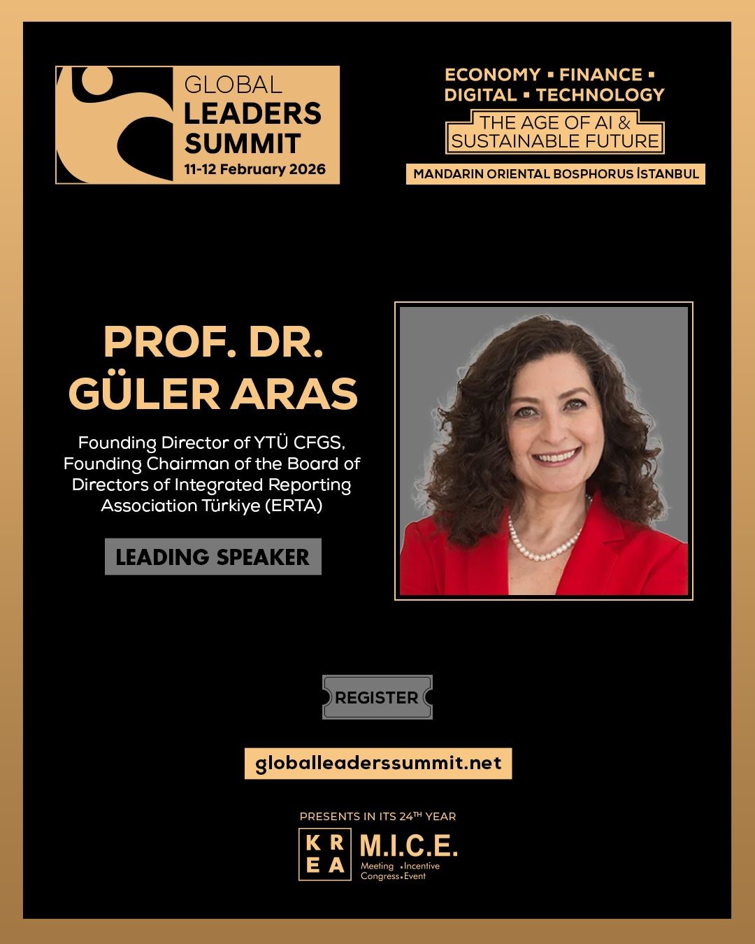 Yönetim Kurulu Başkanımız Prof. Dr. Güler Aras, 11-12 Şubat 2026 tarihlerinde Altın Liderler jüri üyesi olarak destek verdiği “Global Leaders Summit” etkinliğine konuşmacı olarak yer aldı. Zirvede; ekonomi, finans, dijitalleşme ve teknoloji alanlarındaki küresel dinamikler "Yapay Zeka Çağı ve Sürdürülebilir Gelecek" teması çerçevesinde ele alınırken, Yönetim Kurulu Başkanımız bu stratejik buluşmada kapsamlı değerlendirmelerini paylaştı.