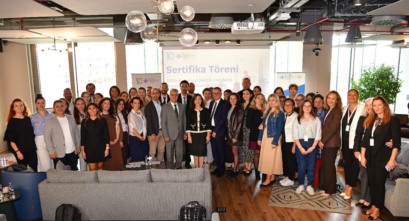 Kurumsal sürdürülebilirlik raporlaması alanında yetkin uzmanlar yetiştirmek ve Türkiye’nin yeşil dönüşüm yolculuğuna katkı sunmak amacıyla geliştirilen ERTA Akredite Kurumsal Sürdürülebilirlik Raporlama Uzmanlığı Eğitim Programı’nın beşinci dönemi başarıyla tamamlandı.